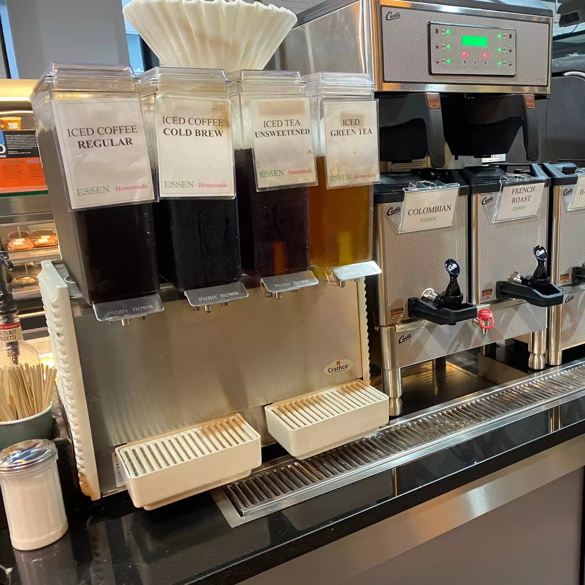 4 of our 7 breakfasts were eaten here. Bagels were fresh and toasted to order with a generous schmear of cream cheese. Sausage egg and cheese croissant was good. Coffee brewed fresh and Essen had numerous flavors and cream choices. It was a beehive of local activity every business day.