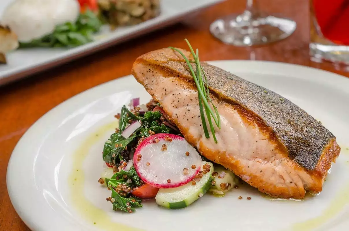 I was with nine people for restaurant week ($42) for choice of from three (appetizer, main course and dessert). I had a kale and apple salad - excellent but too much. My main course was Atlantic Salmon - was asked how I wanted it done - was perfect but too much and my dessert was kind of an ice cream soda with bourbon. Perfect. We were nine and it took us over 30 minutes to pay our bill because the restaurant only could do four credit cards from a bill. I paid cash. It was stupid because in Canada - we can be 20 people at a table and ask for separate cheques and no problem. The paying of the bill took away from the experience of the meal.