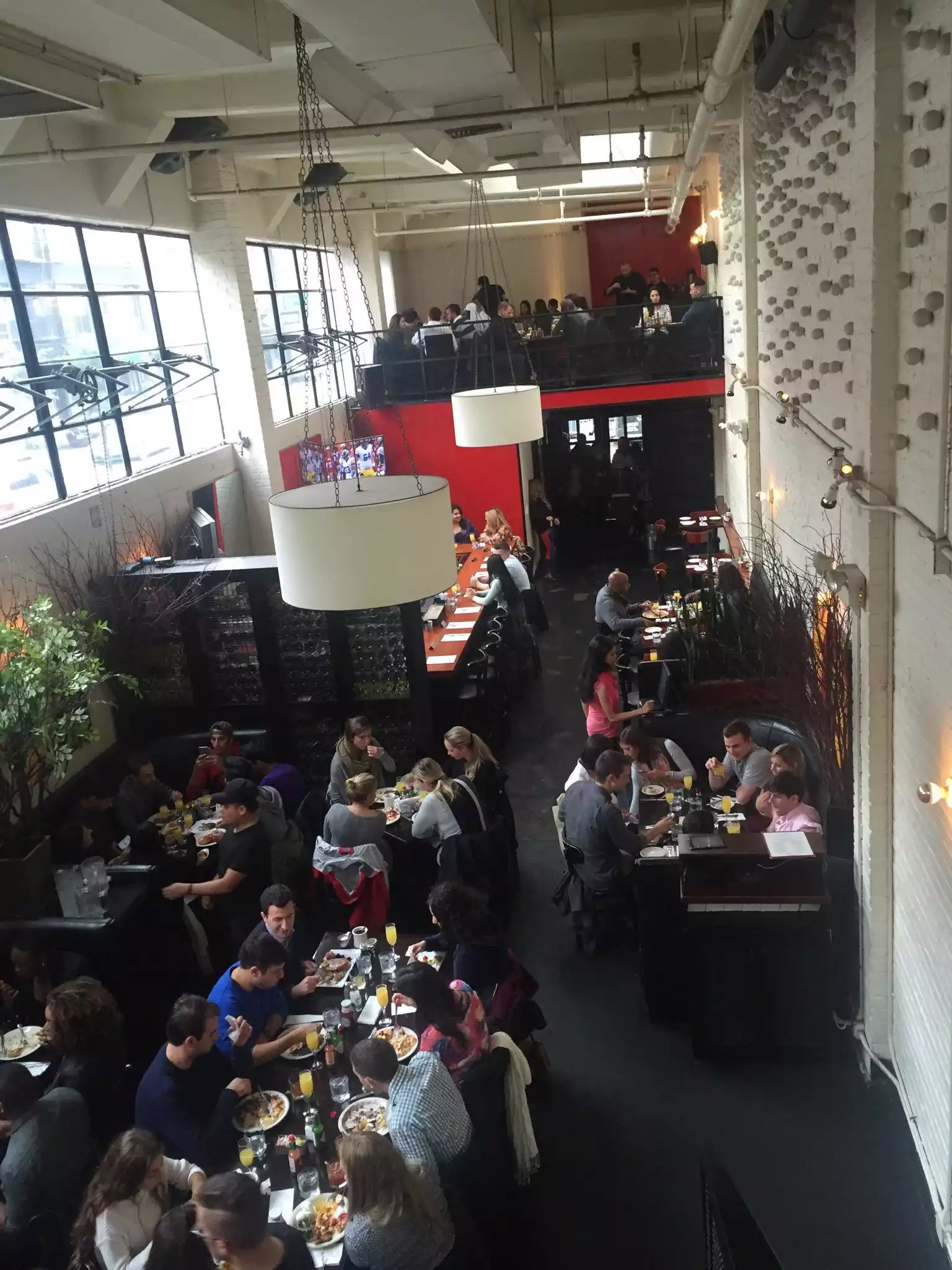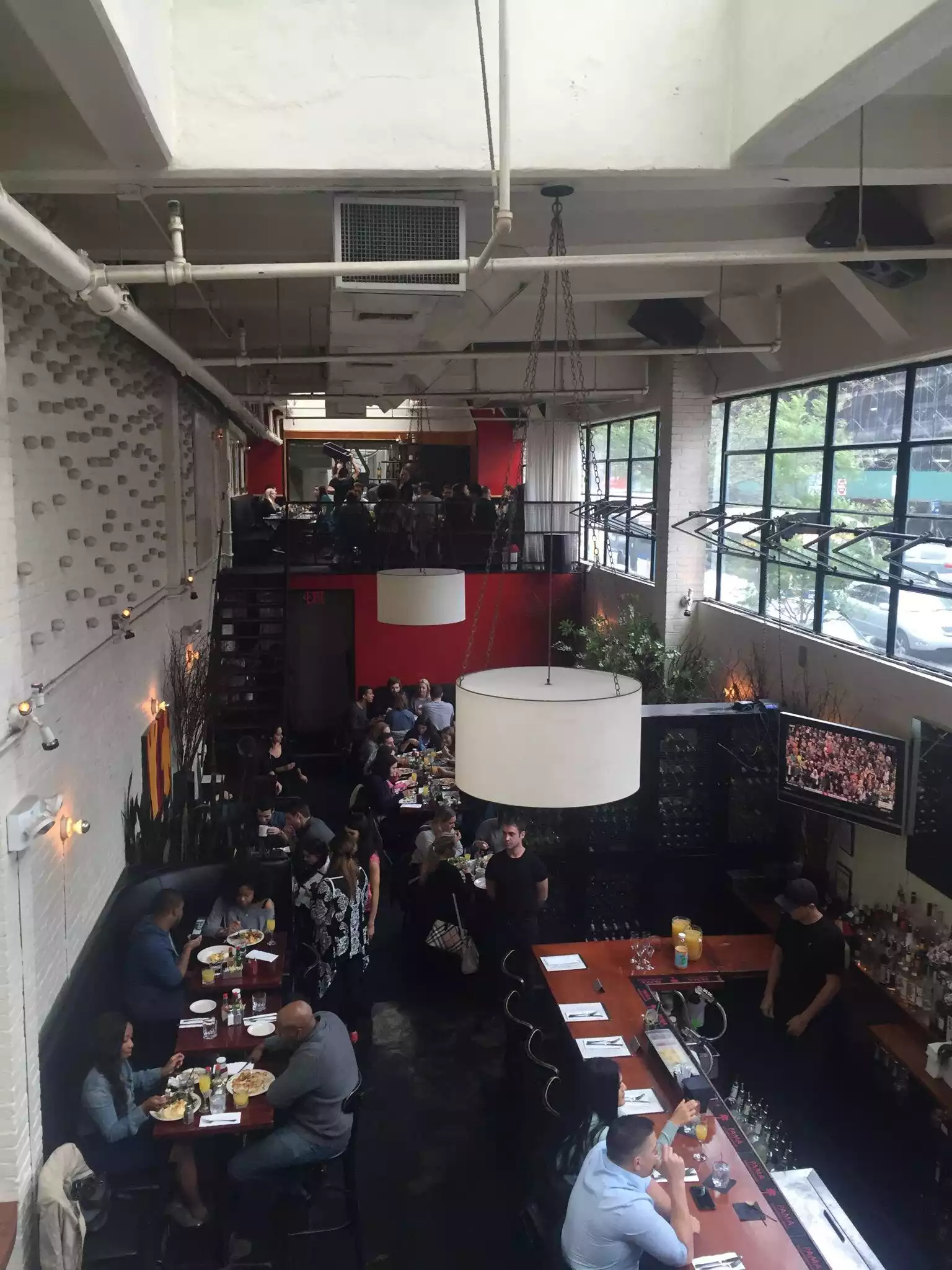 I arrived at around noon on a Sunday, it was busy but we didn't have to wait for a table. It was a post birthday weekend, hangover recovery breakfast. We sat at the bar and ate breakfast, mimosas were included in the price fixe breakfast menu (it says limit 3 before they start to charge you but the bartender just kept filling our glasses). The Bloody Mary's were DELICIOUS, spice and delectable-best I ever had. I had the Mexican Brie Scrambled Eggs, WOW. Eggs and home fries were delicious with the beans. Mid meal the restaurant was packed, WALL TO WALL! Obviously a hot spot and a hidden gem, it has plenty of seating from the bar to the upper floor. The food offerings were endless and everyones plate looked amazing.