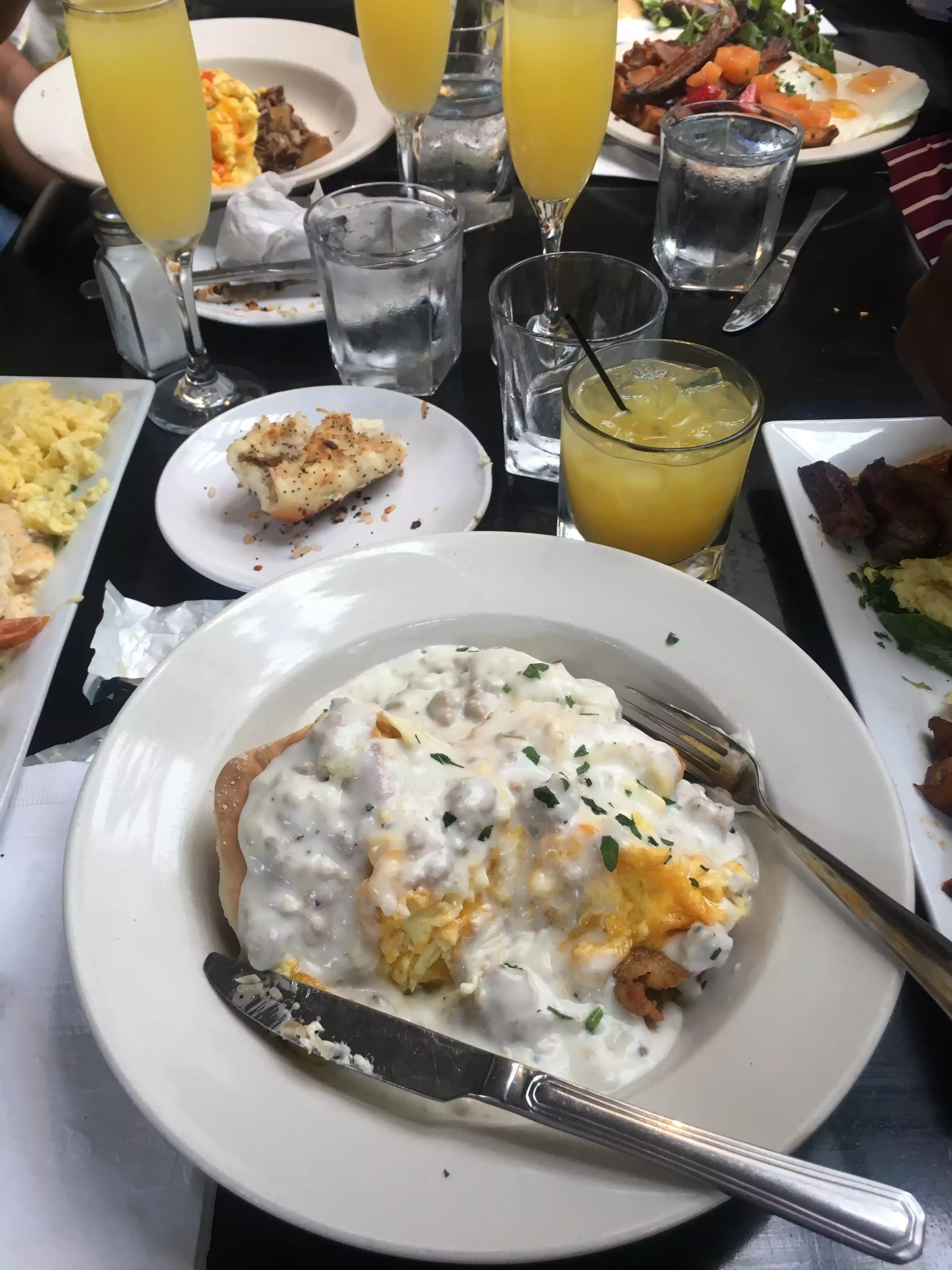 My friends and family all came here to celebrate my pre bday with a bottomless brunch. The place was packed. Please know they won’t seat you until your whole party has arrived. The music was a mixture but good for everyone joining. Definitely won’t be any complainers when it comes to the music and drink mixture and oh yea, you will get tipsy so dance if you feel like it (it’s allowed) lol. The food is the best part. So many choices to chose from. For the price that you pay and the amount of food you get , I will be making a second trip back it’s totally worth it. I ate the Southern...Omg it was so delicious.