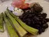 this was our first trip to a brazilian restaurant. salad service ran very deep. u could stop there...great assortment of meat, cheese,smoked salmon, peppers, mushies, and so on and on...meat service started about 1 second after u turn your card to "green"...get ready...here they come...sides of plantains, mashed potatoes, a granola like mix and polenta. all very tasty...we had 7 or 8 of the 14 featured meats..plus turkey for thanksgiving. all were good...i thought parmesan pork?, filet, pork ribs, sirloin and lamb chop were outstanding...creme brulee for desert...enough for 2....no complaints...service was 150%...came from out of town and was 1 hour early...we were seated immediately... and vegetables.