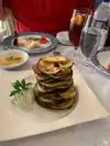 The fried zucchini and eggplant was so good and delicate I would go back just for that. The lamb gyro is made with real lamb not your typical gyro meat which made it very good. I’d skip the plate of tomatoes, peppers, olives and feta it was ok and there are so many better choices. I got the pasta with spinach and tomatoes I was so pleasantly surprised because it was very light not like typical Italian pasta and with fresh feta. I am so glad I tried something I wouldn’t normally it was very good. Dessert was good not as good as my mother in laws but good we got the honey cake. The decor is really pretty and rustic. I would go back again.