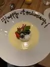 Was looking for both a unique AND memorable Anniversary Dinner - found it! Salade de melon ET Pasteque (What was that!!!!) Watermelon, cantaloupe, feta, olives, basil, arugula sorbet - soup or salad or both but simply amazing! My wife had the salmon and I had the duck and both were perfectly cooked. The sauces on both were just amazing. Lastly, the Ile Flottante dessert, with a chocolate “Happy Anniversary “ was the perfect touch. We will not forget this great, great experience in San Diego, where we honeymooned 35 years ago! Thank You Et Voila!
