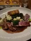 Was told to try to Pheasant unfortunately our server announced that they had none. So went with the Quail. Which was very good but very small. Had a nice Grenache red wine, we passed in dessert. Nice place in busy area. Our server was a bit too eager.