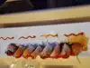 Great sashimi platter for two and a CA roll - really good quality. Excellent service. Fairly reasonable prices. All around a real winner for us. Wonderful ambiance. We’ll be back!