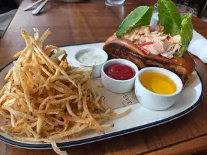 Nice restaurant experience. Lovely decor, great customer experience, and really good food. Had the lobster roll with shoestring fries. Absolutely delicious.