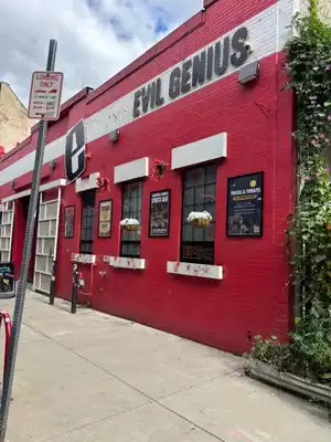 Pros: beer is good, interesting variety, although a bit heavy on the IPA options Cons: food is basic, you need to order your drinks/food at a central spot at the bar, where you collect your drinks and have your food delivered to you when ready Warning: One of our ordered food items was not delivered after we placed our order at the bar and paid. We were told that we were not billed for it (not sure of that - paid cash) and that to order the missing tacos a credit card was necessary, which I gave to the waitress. We began eating and drinking what we had and eventually the tacos showed up. We ate those, talked and drank some more, and left about 90 minutes after we arrived. Only after returning home almost 3 hours away did I discover that the waitress never gave me back my credit card/had me sign for the taco order charge. I noted that I had received a square receipt by email, reflecting a charge placed at midnight (we left at 7 pm) - $6 for the tacos and a $2 tip! I immediately called Evil Genius that night and left a message for a call back. I then called during business hours the next day and again left a message. I also e-mailed. No response. Not good business practices. I wonder how many other customers have a 33% tip added to their bills without their knowledge? I also wonder the fate of my credit card (I cancelled the card once I realized I had left it and there were no additional charges.)
