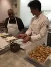 An incredible treat awaits you at Frieda Cafe Atelier. The other day I was running errands and needed a moment to catch my breathe. Upon entering the cafe I was immersed into calm, open space in a light filled room with aromas of freshly baked pastries. The counter displayed other sweet options as well as a full espresso bar including a house-made chocolate syrup, vanilla soon to be added, and a full range of flavorful teas. Even some Gluten free options. The Macarons are made with seasonal flavors and home-made jams. Scones with home made lemon curd….yum!!!!! The Rugelach —nuts, raisins, and other ingredients rolled into a cookie— are a MUST! The Winter menu offers varieties of patisserie, soups, quiche, salads, and sandwiches. Afternoon Tea is offered on Thursdays 3-5pm. Weekend Brunch includes omelets. Lots of tables to sit at and linger over some delectables and conversation. Hmmmmm…what to try..…the possibilities all looked tempting. Pastry chef, Emily Holtz, suggested Apple Pie Verrine…. An Incredible edible of the senses!!!!!! While watching owner/partner David Wong — Le Cordon Bleu for Cuisine and Ecole Gregoire Ferrandi for Boulangerie trained— instruct his team of seniors how to make each dark chocolate button cookie individually, I chatted with other owner/partner Thomas Steinburn about the concept behind the Atelier. “At FRIEDA, we believe our lives are enriched by connecting with people of all generations. We’ve designed a space where sharing our time, talents, and life experiences happen over tea, coffee and homemade foods.” Whether for a quickie of taste on your way to work in the morning or after wandering the Philadelphia local attractions or shopping or a movie at the Ritz or just in the mood to sit quietly….. Stop by and enjoy a piece of delight.