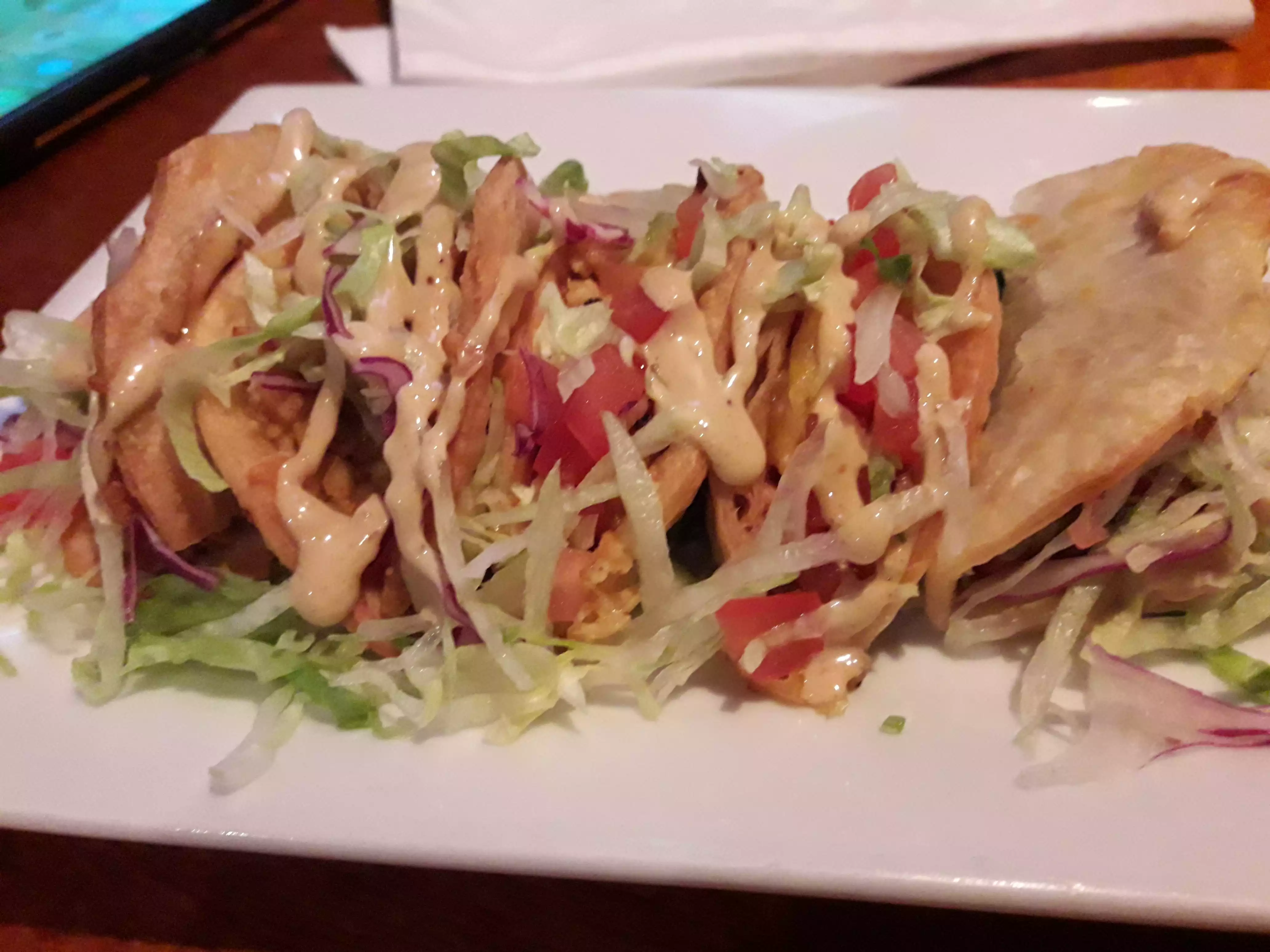Excellent bar food. Sports TV so it was a little loud but the food was totally worth it. Get the Chicken Tacos appetizer!