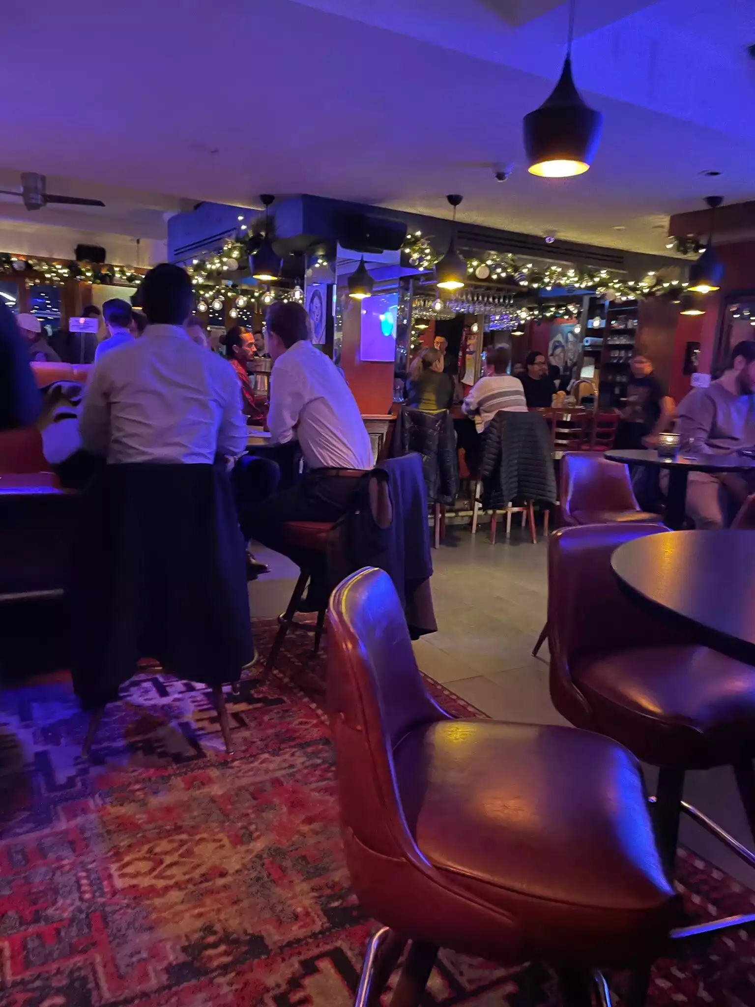 Cozy bar with tasty drinks and pub food. Talented staff plus festive atmosphere made for a relaxing respite after a full day of touring NYC with teens on Christmas break.