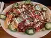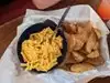 Very good food. Cornbread was very sweet which was. Fresh. Jalapenos on the nachos were very hot. Never trust a fresh pepper 🙂 mac and cheese was a little bland was able to add salt to it and it was fine. Brisket did not taste like it had been cooked on site but was still pretty good. Chicken strips were excellent. You could tell they were very fresh.
