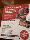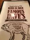 Excellent BBQ food , plus a GREAT choice of beers to sample by requesting the Famous Dave's Beer Flight. One of the best beer samplers in town...And some of the BEST BBQ around! (My only complaint is I paid $7.50 for a 16 oz pint of beer.!)