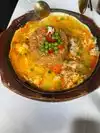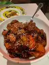 No one spoke to us the entire time there. The owner came to our table and just stared at us until we ordered from him. The appetizers and food came out together. The order was wrong and they did not want to change. The salt and pepper shrimp were good, but the short ribs looked like sheep pellets and tasted strange, and the sizzling rice had little flavor. When we didn’t eat all the appetizers the waiter(wordlessly) just put the rest right on our plate without asking. A huge disappointment and no celebrity chef to be found. A younger me would have walked out of here halfway through. Don’t waste your time here.