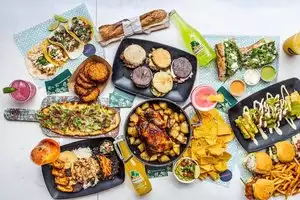 Fantastic place to enjoy a dinner . Loved all the choices. Street food atmosphere. Many great tasting options. Full bar to bring your dinner to enjoy. Lots of space . Great for a large party. Prices are very reasonable.