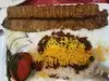 delicious kabob's and rice, my entire family loved their choices the salad was perfect also great service, it was a very good choice to go all the way there for a good authentic Persian meal