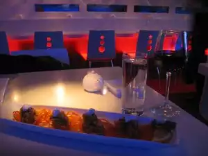 Fresh and delicious food! We ordered the sushi and sashimi boat for two : reasonably priced for an excellent quality and variation. Ordered the Mr french kiss as well, for a speciality twist: highly recommended. Do reserve a table unless you want to end up sitting at the bar; which unfortunately though beautifully decorated, is kind of crammed. I wish the staff were a little less rigid: I asked to change seats from the bar to a table, since quite a few opened up, however the waitress refused to seat us at the table because we didn’t have a reservation, and those tables remained empty till closing time.