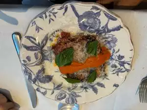 We went on a group of 3 people. Two of us ordered the lunch special and the other a steak. The appetizer, which was eggplant parmigiana, was excellent. The entree was a pasta either a strange name with burrata and tomato. It lacked some more taste. The place is very nice and the service was good.