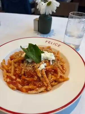 Just three day after it opened, we ventured to Felice and were impressed by the friendly staff and solicitous service. Flavio the general manager made the rounds to make sure everything was as expected. IT WAS. With so many pretentious and overpriced restaurants around, Felice is a clear choice. We shared Polpettine (meatballs) al Pomodoro, delicious with just the right amount of sauce and then the house Ravioli and Pappardelle con Salsiccia (Italian sweet sausage) both excellent with an inexpensive but great tasting Primitivo wine from the Puglia Region. Three days after opening, I can understand the rather limited menu, missing a couple of Italian classics and this is the only reason we are letting sometime pass until they expand the menu to include a sirloin tagliata, pasta al vongole, pasta with shrimp etc. Menu is reasonably priced. I would most definitely remove the Burger and Fried Chicken from the Dinner menu and make them available only for lunch. In my opinion it detracts from dinner expectations and the overall white tablecloths ambiance.