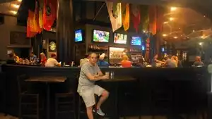 If your looking for a Sports Bar this difiniately fits the bill. Cold beers and good Nachos, but for me that was it.. it was more like a mans pub, not the place to hang out too long in for a female.