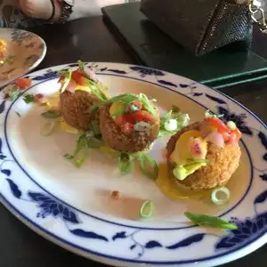 What attracted us was the Peruvian fusion Korean bibimbap. It was really not that good. What was good was the fried hogfish with the special sauce they have. It was huge, not dried out. Really good. Until I got the bill and saw it was $40... Sticker shock but still worth it :-)