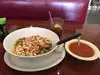 We brought the dogs into the back where there is a small outside patio. This is both good and bad. Very nice to be outside and it is shaded by a big tree, bad because this big tree keep dropping tree stuff into your food and drinks. Service was awesome, food was plentiful, food was not as tasteful as other places. Prices are higher than standard. This is often visited by BIG bodybuilders from Golds gym. Ok place but I would rather go to other places.. There are so many choices out there.