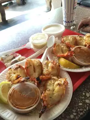 Being more of a "turf" than "surf" guy, fish normally does NOT excite me...................... ESSSEPT for this place... Love the seafood here. ALL of it. Go with a group and share various dishes. Get the fried fish and shrimp combo. Oh sooooooo crispy and fresh. Select a grilled fish dish and ask for a side sauce (or 2). I prefer the cajun sauce. OR, go for the jumbo prawns. They are big. Want bigger, get the lobster. Good price for a sizable perfectly cooked ocean dweller. Get some chowder, I love the red, but the white is just as good. The shrimp cocktails are good. Add lemon to taste. For newbies, go from the market side, the line there is normally shorter. Admire how nobody writes anything down. All orders are shouted with everyone crammed behind the counter and over the grill area. Hours are limited. Lunch ONLY. Find a table in the shade and ENJOY.