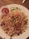 Such amazing fried rice, scallion pancakes, stuffed eggplant and dumplings, Malaysian chef, nice family business, highly recommend! Will try the curry next time!