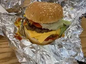 Burgers in Five Guys are overpriced air in a can, small, overbaked meat for $9, fries from local, but terrible quality potatoes for another $3. Terrible cooking smell you smell even hours after you go out from the restaurant.