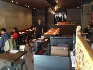 My daughter wanted to have dinner here and we were both a little disappointed. Hard to get a table and when we did there was mess all on the floor. Wouldn't rush back