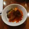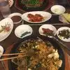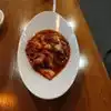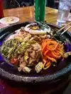 I ordered a meal called "fire chicken" where a great big sizzling plate of chicken filets is brought to your table and the filets are cut up into bite-size pieces by the waiter. There are various side dishes which are brought before the main course consisting mostly of cold vegetable appetizers. The chicken comes with rice and is excellent.
