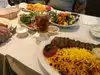 Excellent Persian food ! We started with mezze : mast - o - Hier which Is yogurt with dill and chopped cucumber 🥒 And fresh pita bread . Also we ordered a pitcher of yogurt drink Doogh , watered down yogurt with dill and chopped mint . With ice . Helps digestion I think . For the main course we had chicken with different kinds of rice / I had chicken with zeresh pollo : orange rice with barberries / small berries similar to cranberries. And a roasted Tomato on each plate . My husband had lamb kebab with cherry rice . My girlfriend had the same as me and her date had lamb shank with rice also. Chai was served at the end / Persian Tea Not the same as Indian Tea / tea with cardamom flavours.