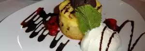 My girlfriend & I met another couple for dinner on a Monday evening. The restaurant didn't seem full, and yet they stuck us back in a corner, where a wall was blocking our view of most of the restaurant. The service was very attentive and polite. The food was served quickly. Three out of four of us ordered the prime rib special. For the most part, they were are correct & tasty, although a little dry without the provided au jus. The fourth simply ordered a burger & sides, but the burger came out quite a bit under done from the medium well that was asked for. The desert ordered by everyone, per a recommendation, was the chocolate lava cake, which comes with vanilla ice cream. That alone made everything else better! Make sure not to pass that up, even if you share one.