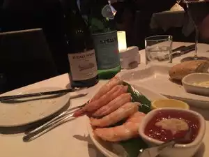 I was there with a group of people, and had a wonderful time. The seafood tower is FANTASTIC!!!! Huge shrimp, plenty of lobster and crab legs. The calamari (recommended by the waiter) was very underwhelming. I had a filet with the lump crab and Bearnaise sauce. Very generous lumps of crab and the filet was wonderful. The waiter oversold the Brussels sprouts, we probably had 2 extra bowls of it that nobody ate. The bone in rib eyes looked amazing. No room for dessert after that meal!