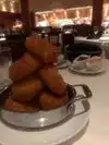 Other than wagyu steak, a bone in rib-eye is my favorite cut. Fleming offers a 16oz plate which does shrink in the cooking process, so it was not an overwhelming size at the table. It was delicious, no doubt about it, as one would expect from a credible steakhouse. I would normally have just the steak and a Cesar salad but one of my colleagues ordered a number of additional side dishes, and I had to try the crab cakes and the calamari. I could have made a pleasant meal with just these two side dishes, they were excellent!