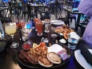 Nothing special here. Food is like a normal bar restaurant. The service was not that great. We waited for a long time before we asked for menus. To be told Q codes are on the table unfortunately, our table had none. This could’ve been avoided if the hostess would’ve said something when we were sat. We finally get a server to come over. She was in a rush and didn’t take my order until after other people’s food came to the table. I have dietary restrictions therefore, I cannot eat the same thing everyone else did. I we ordered another round of drinks. The bar was right behind us and we saw the drink sitting there for a very long time until I got up and grab them myself. when the bill came they had three options for suggested tip 20%, 22 and 25 the waitress circled 20% and wrote the amount in, on top of that was a 5% service charge added to the bill. I’ve had enough and cold for the manager. She did nothing I couldn’t even get an apology for lack of service. They refuse to take the gratuity off the bill. We were forced to pay 27% which is not legal and they did it anyway.