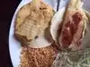 Fresh and delicious! 3 of us ordered the fried avocado dinner, thought I was getting a stuffed fried avocado but wasn't disappointed, the lightly battered avocado half was served on top of well seasoned roasted chicken and served with beans, Spanish rice,and lettuce tomato salad, chips and salsa we're better than average! They have nice outdoor seating areas that overlook a really nice playground for the kids, the grandson had a great time!