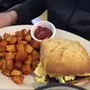 Thanks to several travelers' great review, that is what brought us here. We had a long layover at the SEA airport, so no pressure. They have both a "grab and go" section and a sit down section. Some of the items looked great from the grab and go, but you cannot order them. We got there when they had plenty of tables. Friendly staff. Split the asparagus spring vegetables egg scramble and cinnamon roll. The roll was the size of a dinner plate! Certainly was a better breakfast from a fast food joint. We thoroughly enjoyed it. Sure the price is high, but it is located where $4 for a bottle of water occurs.