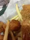 Flying Fish is a regular for us. A 2-for-1 coupon is always appreciated. I ordered the four fried shrimp and one catfish fillet dinner. The best side is the rice and beans, the French fries are greasy. The hush puppy balls are a great extra. This is a great value with great atmosphere.