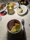 We had the buffet. There are choices of soups and lots of vegetable, salad and fruit dishes, with smatterings of meat and smoked fish. The food was fresh and good and the atmosphere was good. Not noisy.