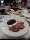 A large hall with many tables and a large table of self-service appetizers. Generally good and fresh. The characteristic of the place is to serve meat at the tables sliced in front of the diner based on a green (I want) or red (pass) tag. Many types of meat, the best is picanha and the fillet comes out at the end when you are full. Great confusion and high risk of being splashed while the waiter slices. There is not the usual presentation of the type of meat offered that I had seen done in San Diego