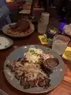 First, we were stuffed after a large lunch and weren’t sure that we could make it through a full dinner. The food here is so good and authentic that we decided that we would go full out - Beef, Pork and enchilada’s. Chandler was a great server - try the shrimp horseback. All was melt in your mouth - a little quieter atmosphere but the building is absolutely precious and the food is to die for. Have to go here for a quieter but so authentic meal. They offer chicken fajitas for beginners that aren’t sure about Mexican food.