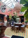 Absolutely fabulous experience! We arrived at precisely 5 pm on a Saturday as it was supposed to open then yet the place was already packed. We snagged one of the tables along the wall and enjoyed a beautiful view of the atrium. The food was excellent, both beautifully presented and delicious. We thought the chips and salsa were amazing, the enchilada suiza was the best enchilada we have ever tried, we also enjoyed the tacos Al pastor and the duck enchiladas. The prickly pear margarita was refreshing and the sangria was strong. The ambiance of the restaurant is like no other I have been in as it is exquisitely decorated with lovely paintings, intricate trim and all sorts of beautiful carved wood pieces. We travel extensively and this restaurant is one of the most impressive we have visited.