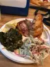 This place is like a bunch of stationary food trucks. It’s cool but quite expensive. We bought a small juice smoothie for $9.00. It wasn’t even that good. The juice place wasn’t busy but two employees forgot about us. About ten to fifteen minutes later I asked about our drink and they were surprised. Luckily they gave us a second one for our troubles. For food my family had burgers and I had the chicken plate with two sides. The chicken was very good but a small portion. The cole slaw was amazing as well as the greens.