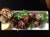 I will admit to being a touch skeptical about all of the rave reviews Forno Rosso has received. After all, how much different can one pizza restaurant be from other good choices. Well...the answer is that it can be significantly different, and significantly better. This is an absolutely terrific place. Except for appetizers and some salads, pizza is it for Forno Rosso - no pasta dishes, no veal dishes, just pizza. And in one size (12" - perfect for two people). A wide choice of pizzas; we had "Rosso Diavolo" - a moderately spicy tomato sauce. The ingredients are clearly all of superb quality, staring with the Neapolitan flour. This is authentic Neapolitan style, meaning that the crust is actually softer than what we are used to (and it is best eaten with a knife and fork, just as they do in Naples). The flavor of the crust is rich, the texture is perfect. We also had a scrumptious grilled octopus appetizer. It isn't the cheapest pizza place, but it once again proves that you get what you pay for. Every aspect of the pizza was exquisite.