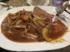 Had lunch here with my husband today. The food was really good. The portions were huge. The entrees come with soup, salad bar, potato, veggie, bread and dessert. Impossible to eat it all in one meal. The service was quick and friendly. Liver and onions cooked to perfection.
