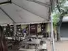 I ate here with 8 others last Friday night. There is a very large, well-lit outdoor seating area on gravel and weather-worn, wooden tables and too-small benches. The band was excellent. The have excellent pizzas and appetizers, a very good beer selection, and you can bring your own wine. The only drawback is that they were very busy, and the service was extremely slow and inattentive. Having said that, I recommend the place highly and would go back.