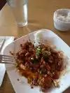Easy parking, clean, hand-pulled noodles, excellent friendly service. Dumpling appetizer very good filling and dipping sauce We both had signature noodle dish, one with shrimp, the other chicken. Not a lot of shrimp. Their spicy scale is toned down so i added chili paste. The noodles were chewy good. Both of us found the signature sauce in the stirfry was VERY bitter to both of us. We ate it, but didn’t really like it at all. That is why the 3* rating. I wouldn’t eat there again.