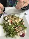 Met old high school friends that haven't seen each other in 40 years. Friend lives in SF and adores this restaurant, for good reason. Sat upstairs where it was a bit quieter, but it's right above the open air kitchen and got a bit toasty. Started with a nice red and shared the bread salad between 3 of us to leave room for the entre and dessert, of course. Two of us had the Tagliaterre pasta with lamb ragout sauce, which was fabulous. Friend thought there should've been more pasta in the dish, but I savored the meat sauce finished with the blackberry sorbet and we all shared the chocolate cake with ice cream, which was an incredible combination of flavors and textures with the hazelnuts. Overall the dinner was fantastic. The only negative was an overly talkative server who regaled us with tales of the logistics of working in the restaurant when we preferred to spend the time chatting among ourselves. He also refused to take our appetizer order until we were ready to place our entire order, which seemed to be more for his convenience than ours. One star off for intrusive server chatter but otherwise a 5-star experience.
