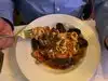 This is one of our favorite local restaurants. We were here last night and had the octopus salad as a starter and it was perfectly cooked. We also had the mushroom bruschetta, which was good, too, though not as good as the octopus. For mains we had the pork pappardelle, the duck breast and a steak. The meat servings were on the small side. The pappardelle was spicy, but in a good way. For dessert we had the apple crisp and chocolate bread pudding, both good.