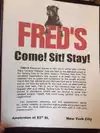 We visited for Saturday brunch a couple of weeks ago. The salmon benedict was absolutely delicious. The staff are amazing - friendly and attentive. Especially the host, Richard, who was seating people and helping the wait staff as well. During a sudden unexpected downpour of heavy rain, Richard went out of his way to help outside diners make their way inside, getting soaked himself in the process. The atmosphere in this establishment is exactly what one wants to experience in a "real" New York City neighborhood eatery. Great food, cold delicious drinks, and a sense of commaraderie among staff and patrons. From the streeside dining area to the expsoed brick inside, Fred's is a quintessential NYC dining experience. The dog backstory adds to the atmosphere. We are thinking about sending some photos of our dogs to adorn the walls.